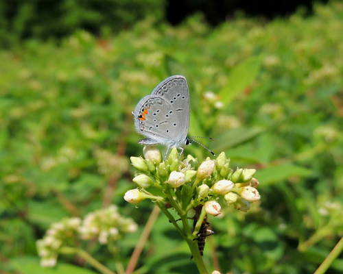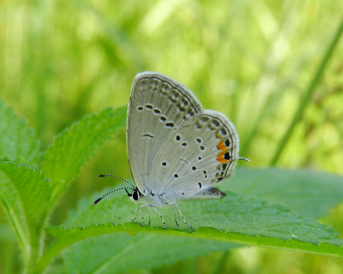 The Eastern Tailed-Blue has small black marks on the ventral side and orange spots near the tail. Yes, it even has a very small tail.