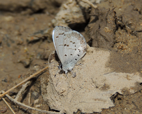 Distinguishing between the Spring Azure (C. ladon) and Summer Azure (C. neglecta) is extremely difficult. I was fortunate to have Harry Pavulaan review these two photos and provide extremely helpful and easy to understand descriptions. As per Harry, in the first photo, "the one with the closed wings shows a peak of that 'greasy' shine of male ladon."