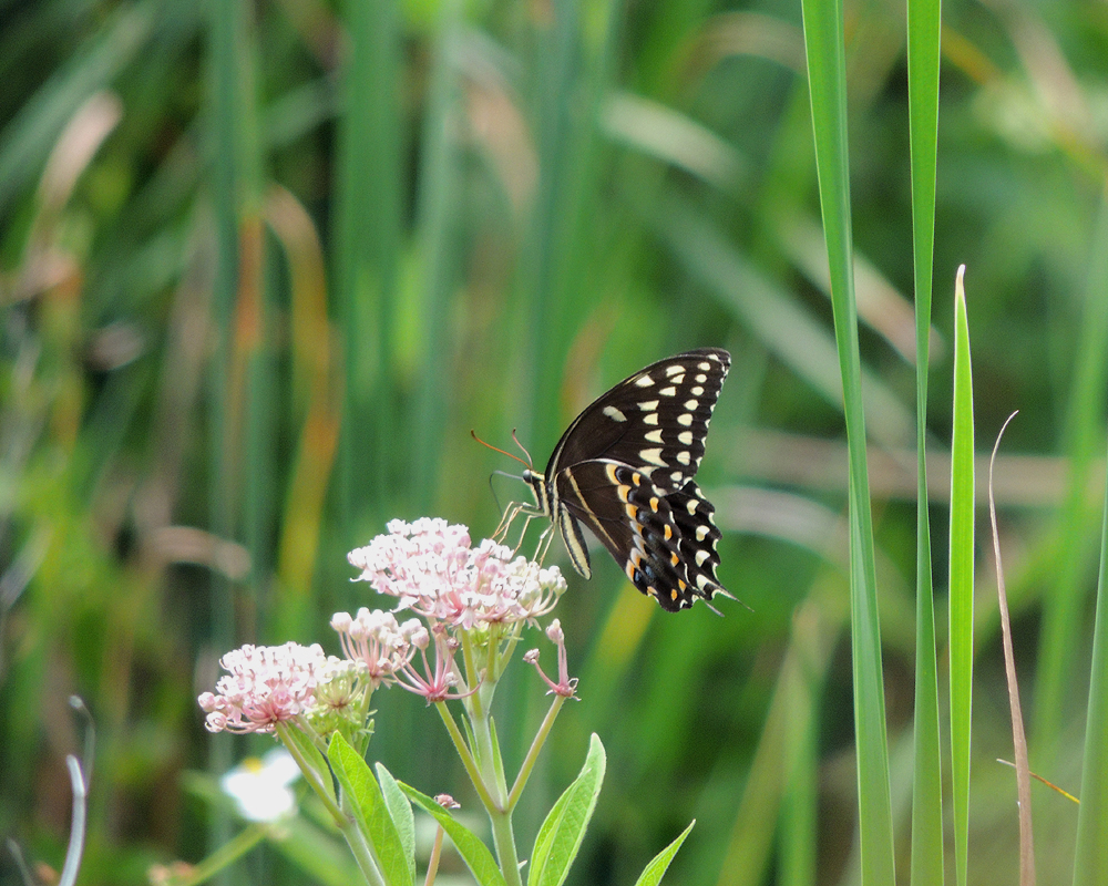 The Palamedes Swallowtail is a large and black butterfly with post-median yellow bands on the upperside hindwing and forewing. They have a wonderfully slow and gliding flight.